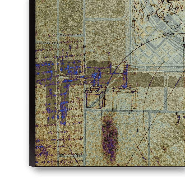 Een straatputdeksel verweven met een tekening van Da Vinci.