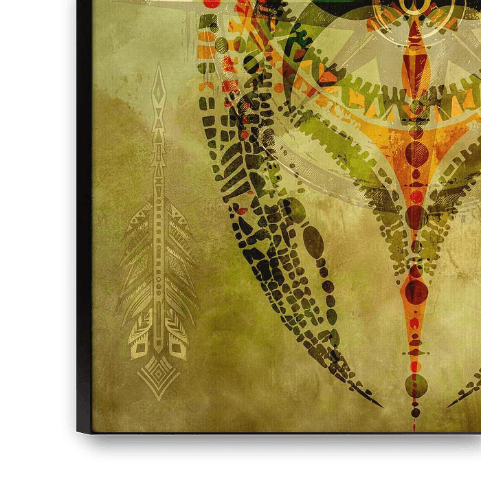 De warme okertonen, gelaagde structuren en subtiele veren en speren maken dit werk tot een blikvanger vol betekenis – perfect voor wie houdt van spirituele kunst met een diepere boodschap.