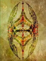 spirituele kunst, mystiek kunstwerk, geelgouden kunst, okertonen, digitale kunst, kunst met kompas, indiaanse symboliek, betekenisvolle wanddecoratie, kunst met diepgang, spiritueel interieur, kunst voor rust en balans, kunst aan de muur, gelaagde kunst, moderne spirituele kunst