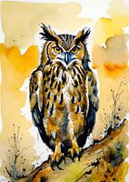 Koop dit vogel kunstwerk Oehoe aquarel van MIROKKU als print op canvas, aluminium dibond, (ingelijste) fotoprint, behang en ArtFrame. Voor jou op maat geprint in Fine-Art kwaliteit.