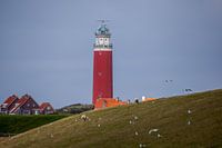 Dit is toch heerlijk en oer Hollands, een vuurtoren op Texel met schaapjes en meeuwen op een grasveld. We hoeven niet altijd blauwe luchten te hebben, Grijs was het die dag en het rood van de vuurtoren steekt dan er goed af.