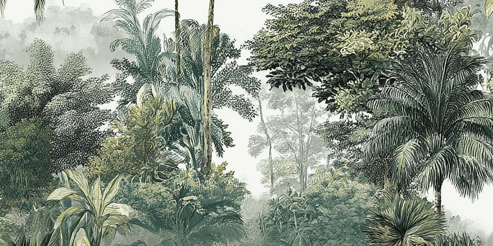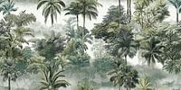 Breng een droomachtige sfeer in huis met botanisch behang vol tropische planten in zachte groentinten. Ideaal voor een serene, natuurlijke interieurstijl. Maak een statement met kunst als behang en laat een prachtig kunstwerk je hele muur omarmen.