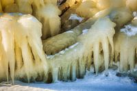 Oever ijs sculptuur gevormd door wind en bevriezend opspattend water.