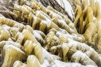 Oever ijs sculptuur gevormd door wind en bevriezend opspattend water.