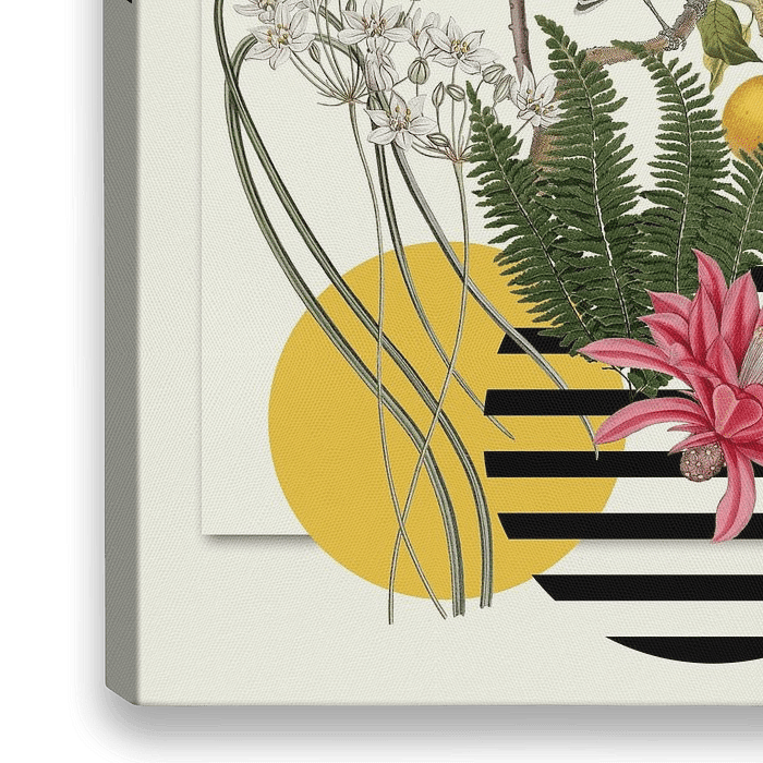 Vrolijke collage met allerlei (botanische) afbeeldingen, vormen, kleuren en bijna zelfs de geuren.