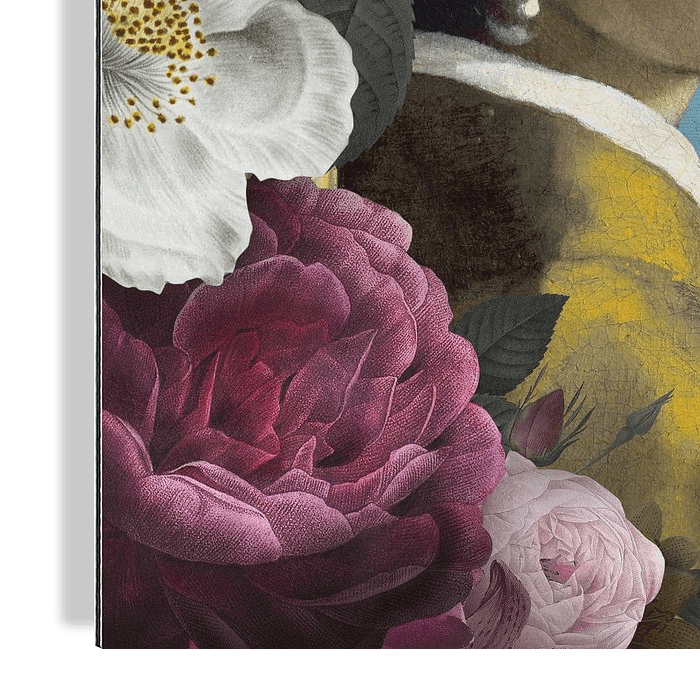Collage met prachtige geschilderde rozen en met in de hoofdrol het door de Nederlandse kunstschilder (uit Delft) Johannes Vermeer in 1665-1667 geschilderde "Meisje met de parel".