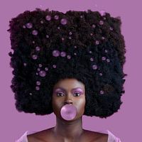 Veel roze, veel lila, veel bubbels, een klapkauwgom en een vierkant kapsel.
