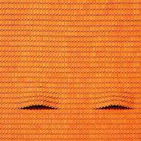 Dakpannen op oud dak, ramen die lijken op ogen, ergens in Slowakije.