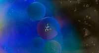 Ogen kijken door blauwe cirkels en bubbels