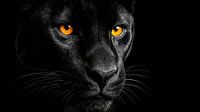 Dit indrukwekkende zwart-wit kunstwerk toont een close-up portret van een zwarte panter, waarbij de fel oranje ogen een intens kleuraccent vormen dat onmiddellijk de aandacht grijpt. De glanzende vacht contrasteert krachtig met de diepe schaduwen, waardoor de foto een mysterieus en luxueus karakter krijgt. De panter, wereldwijd symbool…
