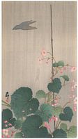 Ohara Koson - Winterharde begonia en schaduw van een vogel in de regen (bewerkt) van Peter Balan