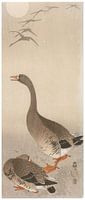 Ohara Koson (1877-1945) was een Japanse kunstenaar van de Shin-hanga beweging, een kunststroming in de Japanse houtblokdrukstijl. Koson, bekend om zijn elegante vogel- en bloemmotieven, maakte een groot aantal houtsneden tijdens de Meiji- en Taishō-tijdperken. Zijn werken worden gekenmerkt door precieze details, subtiele kleuren en een fijne compositie. Koson was bijzonder bedreven in het vastleggen van de schoonheid van de natuur in zijn kunstwerken en gaf mede vorm aan de Japanse prentkunst in de eerste helft van de 20e eeuw.