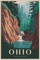 Hier ontvouwt zich een betoverend uitzicht op de natuurlijke pracht van Ohio: Zachte watervallen kabbelen tussen majestueuze rotsen, omgeven door weelderig groen. Dit harmonieuze tafereel straalt rust uit en nodigt uit tot ontspanning. De foto is ideaal voor de woonkamer, straalt een uitnodigende sfeer uit en brengt een stukje natuur in huis.
