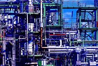 Een olieraffinaderij. Een prachtig gekleurd systeem van buizen en leidingen. Een wonder van menselijk vernuft. Waar zouden we zijn zonder onze olie? Een bijzonder beeld wat ook symbolisch zou kunnen zijn... Verbindingen, complexen, processen, oplossingen.... Het is aan U wat U hierbij kunt en wilt bedenken!