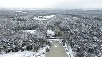 Deze foto is gemaakt door een drone. De drone had ik in mijn rugzak meegenomen tijdens een winterse wandeling door het Oisterwijkse bos- en vengebied.