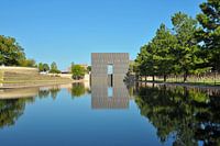 Een monument ter nagedachtenis aan de slachtoffers van de aanslag in Oklahoma City. Hier stond tot april 1995 een torenflat.