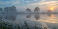 Zonsopkomst aan de Amstel op een mistige oktoberochtend