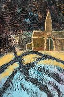 Schilderij van een oude kerk.