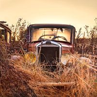 Dit zijn voor mij kleine geluksmomenten, als ik ergens op het Franse platteland bij zonsopkomst zo'n fraaie oude Peugeot mag vastleggen. Ondanks dat hij blootgesteld werd aan de elementen zag hij er nog zeer redelijk goed uit.