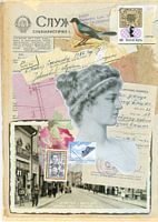 This is an original paper collage made of vintage papers, old documents,postage stamps, and book parts. Imperfect and torn papers with uneven edges create depth and texture.