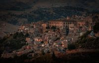 Oud Siciliaans stadje Leonforte in het hart van Sicilie bij schemering.