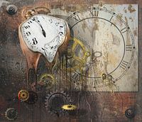 De tijd is kort. Global warming is bijna niet meer omkeerbaar. In dit werk heb ik een horloge laten smelten en een klok uit elkaar laten vallen. Dit tegen een roestige achtergrond.