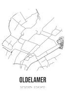 Zwart-witte landkaart, stratenplan of plattegrond van Oldelamer. Oldelamer is gelegen in de gemeente Weststellingwerf, provincie Fryslan. Op de stadskaart zijn alle openbare wegen in Oldelamer opgenomen. Verder is de kaart voorzien van de coördinaten van het centrum van Oldelamer.