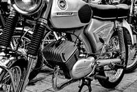 Klassieke Zündapp brommer in zwart-wit