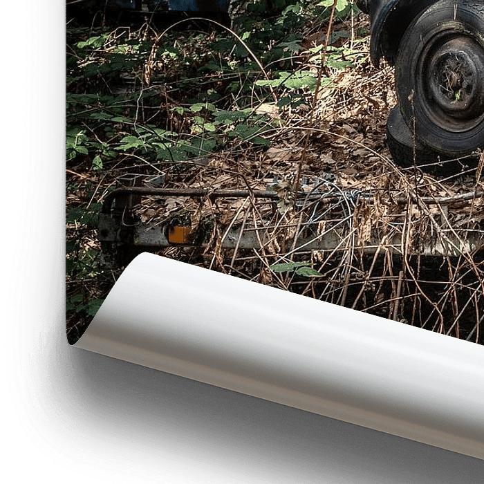 Midden in het bos staat een oude auto, een oldtimer een kleine Fiat 600. Een schattig klein blauw autootje, de deur hangt los, hij staat op een trailer, klaar om weer thuis gebracht te worden. Maar dat zal nooit gebeuren, hij is verwaarloosd, verlaten en vergeten. Achtergelaten diep in het bos, zonder hoop en zonder toekomst.