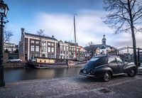 Geparkeerde Oldtimer aan de lange haven in Schiedam