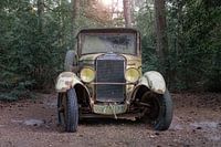 Deze Peugeot oldtimer staat verlaten in de bossen. Het is een raadsel waarom deze auto hier is achtergelaten.