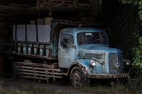 Een verlaten oude geroeste blauwe mercedes vrachtwagen