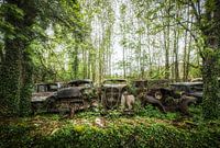 Ergens in Frankrijk in het bos naast een verlaten garage staan deze autos met nog veel meer oldtimers buiten.