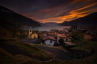Koop de foto Olgiasca village sunset van Wojciech Kruczynski op canvas, aluminium dibond, (ingelijste) fotoprint, behang en ArtFrame, op maat geprint in Fine-Art kwaliteit.
