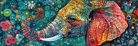 Details: olifant, kleurrijk, abstract, kunst, flora, decoratief, natuur, oerwoud, fantasie, schilderij
