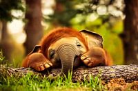 Dit ontwerp toont een schattige olifant die zich ontspannen over een boomstam lijkt te laten hangen. Het surrealistische element van dit kunstwerk, gecombineerd met de ongewone haarkleur van de olifant, maakt het tot een uniek en fantasierijk ontwerp. Deze afbeelding geeft een gevoel van rust en verwondering. De combinatie van zachte kleuren en de natuurlijke omgeving maakt het geschikt voor een ontspannen en rustige ruimte in je huis. Het is een geweldige keuze voor iedereen die houdt van dieren en kunst met een ongewone wending.