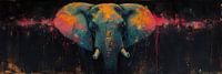 Olifant - Electric Tusker Dreams - abstract neon olifant schilderij
