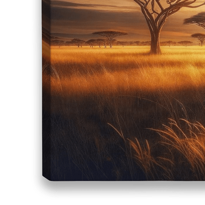 Hedendaagse kunst, realisme, Afrika, warmte, goud, harmonie, welzijn, uitgestrektheid, vrijheid, sereniteit, gouden uur, horizon, stabiliteit, aanwezigheid, acacia's