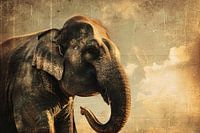 Deze fascinerende artistieke creatie combineert de majesteitelijke schoonheid van een olifant met een achtergrond van antieke kaarten in een verweerde sepia tint. De olifant, gedetailleerd weergegeven met een rijke textuur die elk rimpeltje en elke haar tot leven brengt, contrasteert prachtig tegen de geleefde, bijna vergeten wereld van cartografische kunst. Dit ontwerp nodigt de beschouwer uit om te reizen door zowel de ruimte als de tijd, en vormt een betoverend middelpunt in elk interieur dat de pracht van de natuur en de intrige van geschiedenis waardeert.