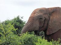 Etende olifant in Addo Elephant National Park. Hij at rustig verder terwijl wij stil stonden langs de weg om te kijken en foto's te maken.