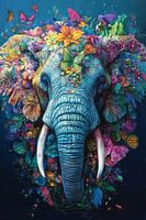 Olifant in Bloemenpracht Dromerige Kleurenexplosie van Eva Lee