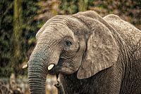 Koop de foto Olifant in de regen van Leonie Berden als print op canvas, aluminium dibond, (ingelijste) fotoprint, behang en ArtFrame. Voor jou op maat geprint in Fine-Art kwaliteit.