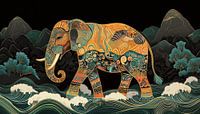 Olifant in vibrante kleuren panorama van TheXclusive Art