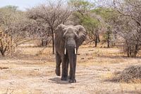 Olifant op wandel in de savanne in het Tarangire National Park in Tanzania. Tijdens het droge seizoen met dor gras.