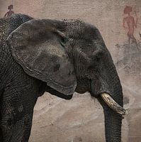 Op zoek naar een rustig en uniek beeld van een olifant trof ik deze reus aan in de dierentuin met op de achtergrond een rots met rotstekeningen. De foto is ultrascherp en staat prachtig in bijvoorbeeld de hal of op de kinderkamer. In Artframe of op glas komt deze het best tot zijn recht.