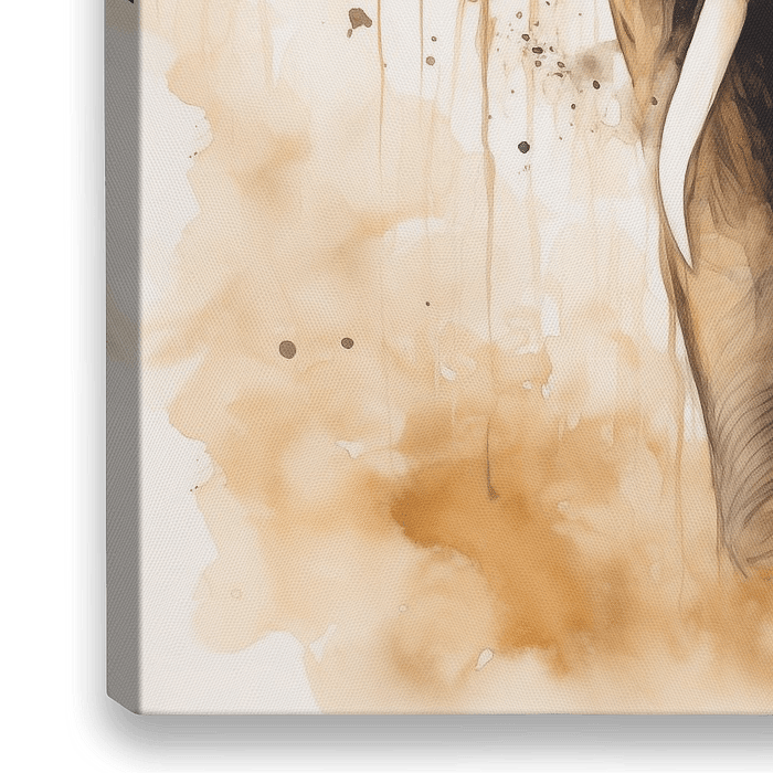 Wandelend over de Savanne, zand en stof opstuivend. Een simpele weergave in aardse tinten.