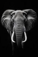 Het dier straalt majestueus en krachtig met zijn indrukwekkende slagtanden en indrukwekkende gezichtsuitdrukkingen. De olifant steekt af tegen een donkere achtergrond en geeft elke kamer een speciaal tintje. Ideaal voor de woonkamer, die kan worden opgefleurd met dit snufje wildheid en elegantie.