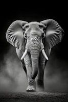 Majestueus en krachtig schrijdt deze olifant naar voren in een dramatische zwart-wit sfeer. Zijn opvallende oren en indrukwekkende slagtanden trekken meteen de aandacht. Dit kunstwerk voegt een wilde elegantie toe aan elke woonkamer en spreekt van kracht en gratie in de natuur. Ideaal voor een stijlvol, modern interieur!