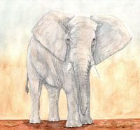 Deze aquarel toont een zachtaardige reus, de indrukwekkende olifant. De olifant als krachtdier Olifant staat voor vastberadenheid, wijsheid, kracht en sterkte, hij ondersteunt en helpt bij het geheugen.