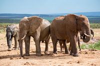 Een kudde olifanten die op weg waren naar een waterplaats in het Addo Elephant Park in Zuid-Afrika